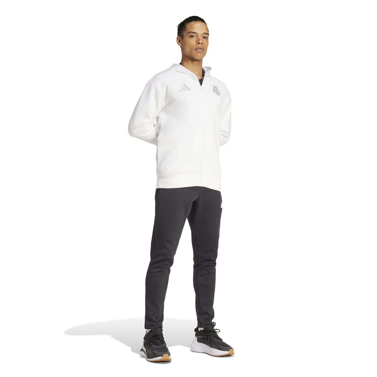 Declare your allegiance to Los Blancos. Created for showing team unity before kick-off, this adidas Real Madrid anthem jacket keeps your football passion on show. Soft doubleknit fabric ensures you stay comfortable and a pair of pockets adds utility. With a club badge on the chest and a team name on the back, no one will doubt your devotion.
