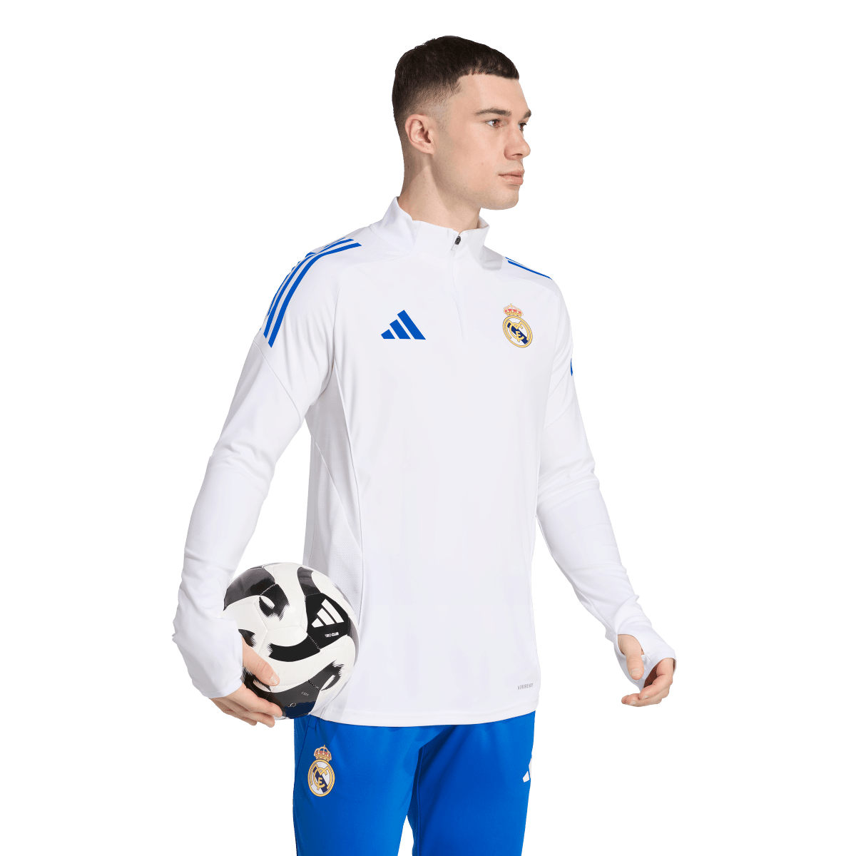 Created to help prepare the Real Madrid squad for their biggest tests, this top is part of the club's adidas training range. Long sleeves with cuff thumbholes offer the coverage you need during chilly sessions. AEROREADY manages moisture so you stay comfortable while you warm up. On the chest, a team badge show your preference for first-class football.
