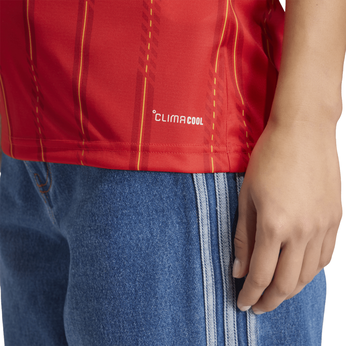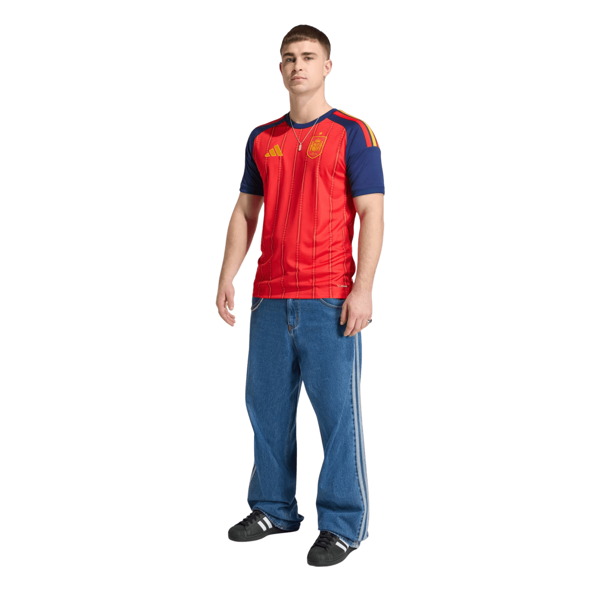 The Spain 26 Home Jersey is a tribute to the passion and heritage of Spanish football. Inspired by the vibrant colours of the Spanish flag, it’s designed to make a statement both on and off the pitch. COOL. DRY. READY. Climacool wicks and disperses sweat for a cool, dry and distraction-free performance. The quick drying interlock knit fabric helps you feel comfortable during intense matches, so you can focus on your performance. Its slim fit creates a sleek silhouette that moves with you, while the rib collar adds a classic look. The adidas branding elements and team crest round off the jersey adding to its elegant style.