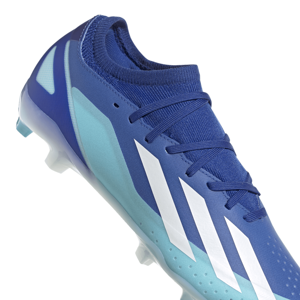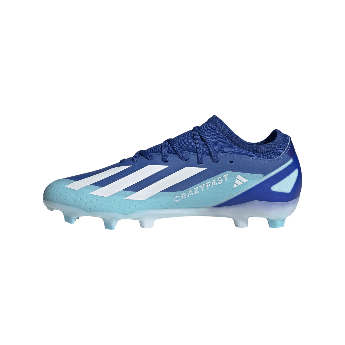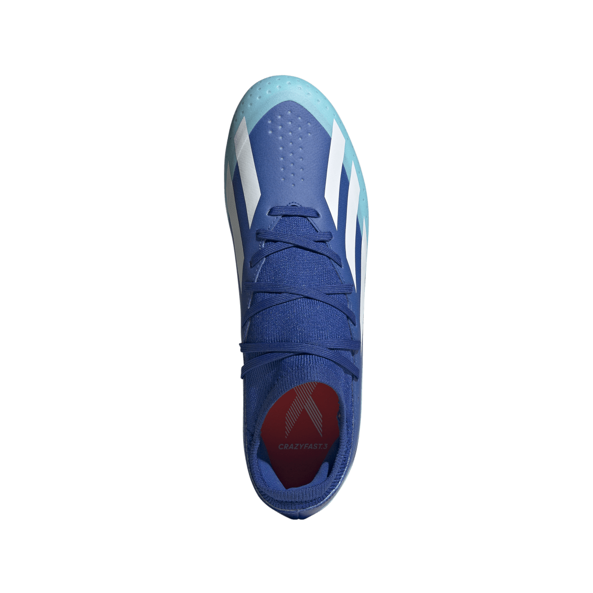 The game's gone? Nah. It's just waiting for you to change it. Again. And again. Like to keep your rivals guessing? Go wild in adidas X Crazyfast. Keeping you stable at full tilt on dry natural grass, these soccer cleats sit on a high-speed firm ground outsole. Featuring extra layers only where reinforcement is required, their lightweight coated textile upper comes with a flat-knit collar that ensures you stay locked in. Made with a series of recycled materials, this upper features at least 50% recycled content. This product represents just one of our solutions to help end plastic waste.