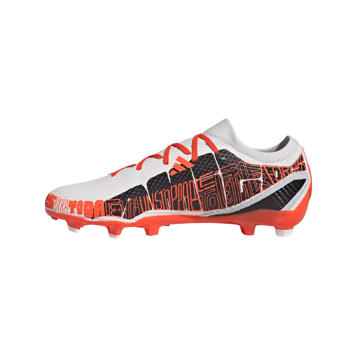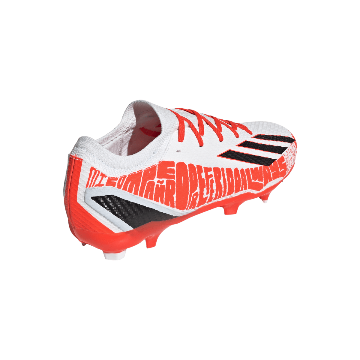 Good players create time and space. Great ones leave them both behind. Unlock multidimensional speed in adidas X Speedportal. Additional forefoot studs on the lightweight outsole of these adidas soccer cleats ensure rapid reactions on firm ground. Up top, the soft, coated textile upper includes a supportive flat-knit collar and rigid TPU external heel lock to keep you strapped in for every cut and sprint. Bold graphics highlight Lionel Messi's lifelong love affair with the ball.