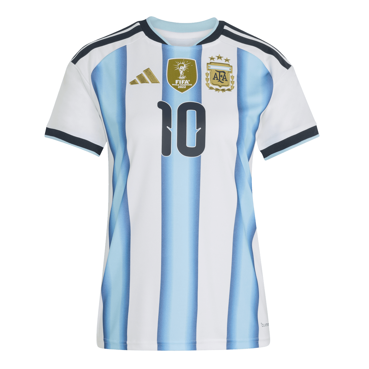 Celebrate Argentina's soccer legacy with the Argentina 26 Home Jersey. This jersey honors the World Champions with a design inspired by the jerseys worn during Argentina's three World Cup victories. It features a regular fit that balances a classic look with freedom of movement. With iconic adidas branding, including an embroidered logo and laid-on 3-Stripes, this piece creates a true connection to Argentina's soccer DNA. The doubleknit fabric provides durability and comfort, making it a great choice for both on and off the pitch. Integrated Climacool technology wicks and disperses sweat for a cool, dry and distraction-free performance, so you can stay focused on the game. Whether you're cheering from the stands or playing on the field, experience the pride of wearing a jersey that celebrates Argentina's soccer triumphs and showcases your passion for the game. It's more than just clothing. It's a way of life.