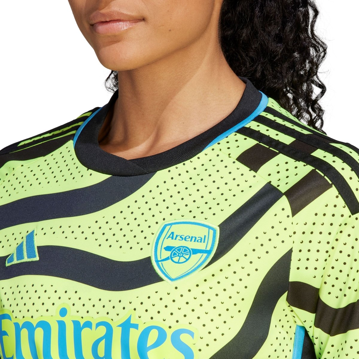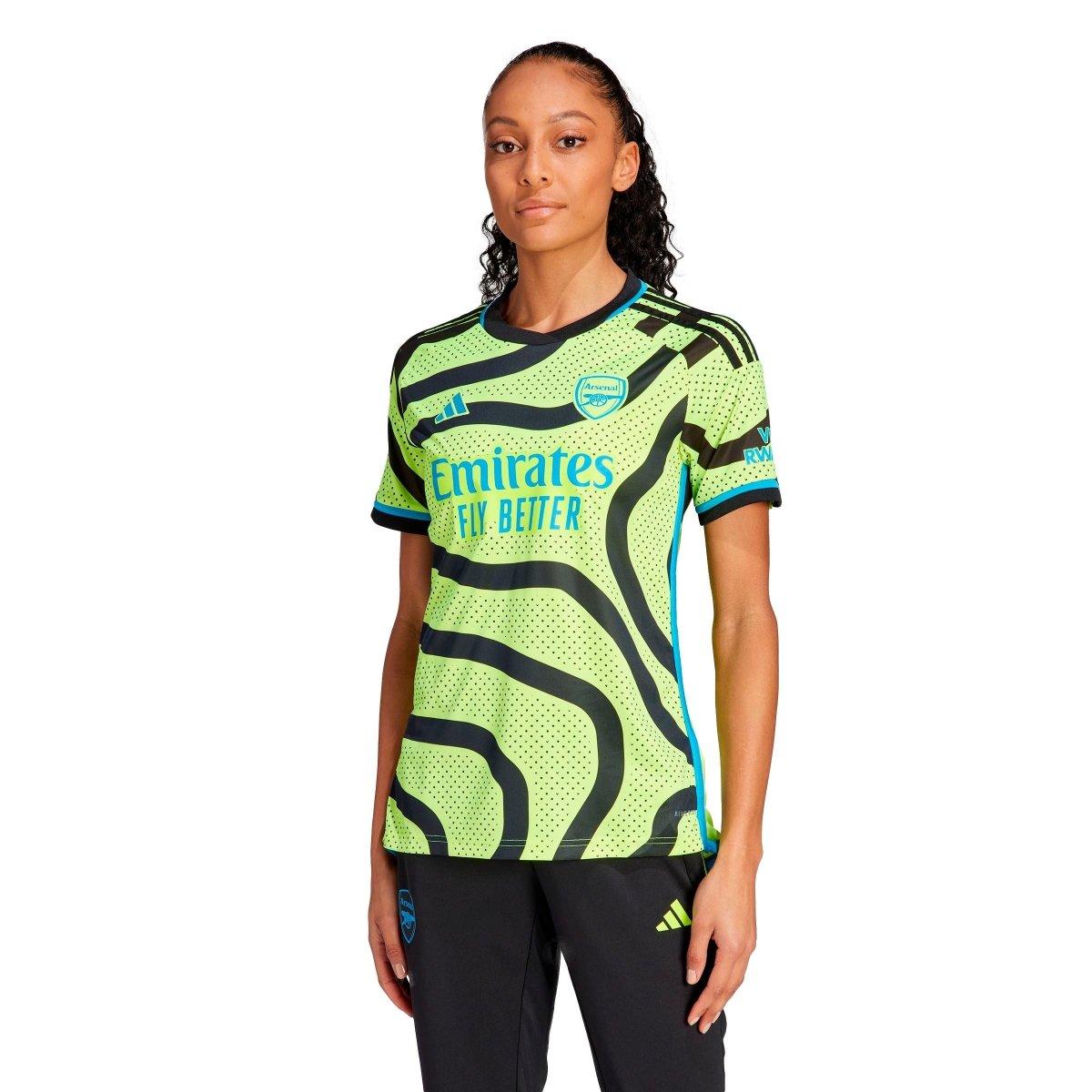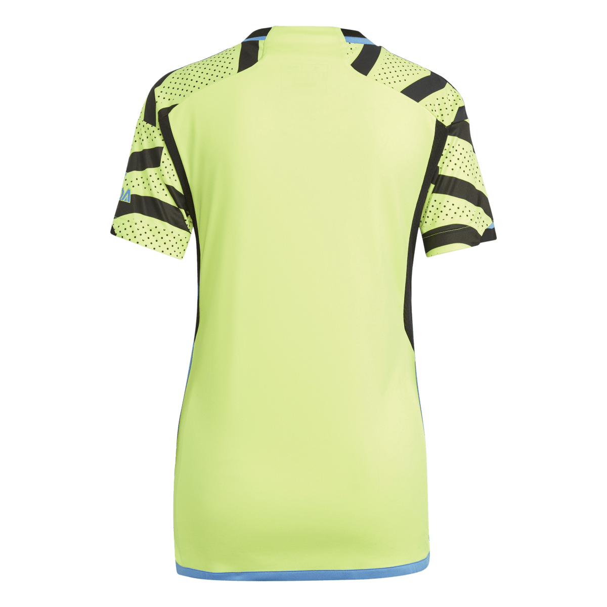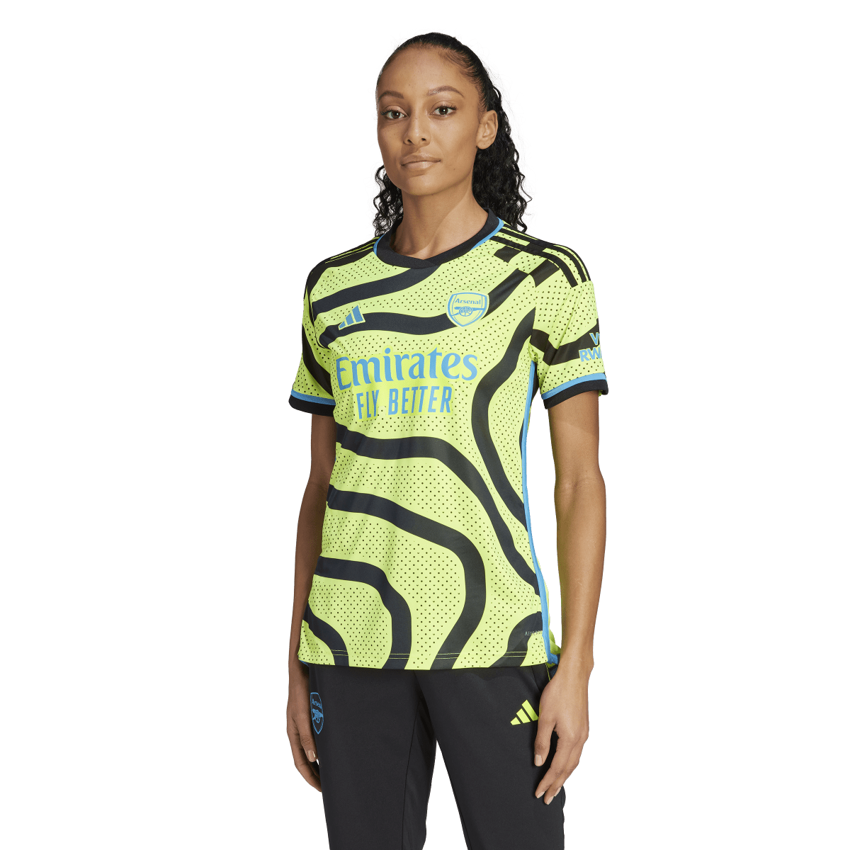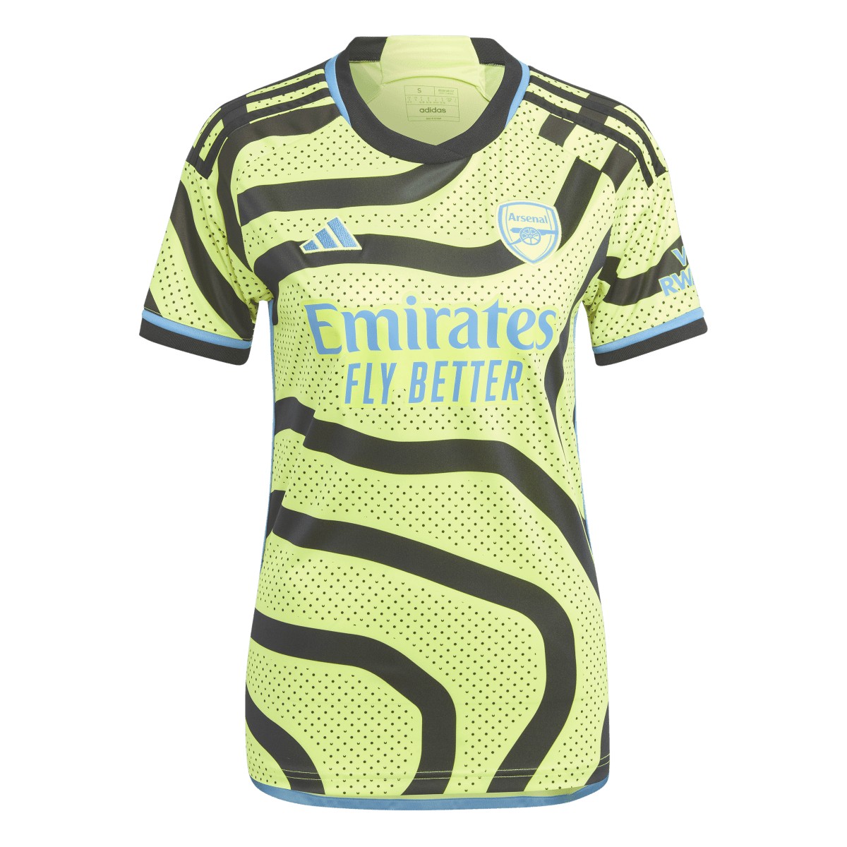 There's no place like home, but Gooners will travel far and wide to follow the Arsenal to glory and whether it's a pilgrimage to the Emirates Stadium or an away overseas, match days are as much about the journey as they are about the beautiful game. Inspired by the passion of traveling supporters, the Arsenal 23/24 Away Jersey is loosely inspired by a map of the teams' borough, with fluid lines reflecting the flow in and out of N7 when Arsenal fans are on the march. A fresh, shock-yellow color completes the update, alongside light blue accents. Created to keep fans comfortable, it combines soft fabric and sweat-wicking AEROREADY.