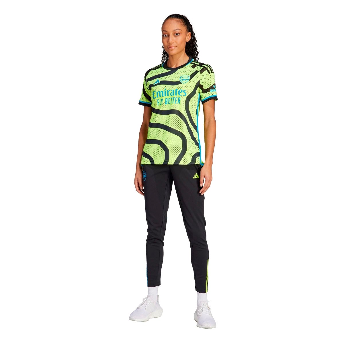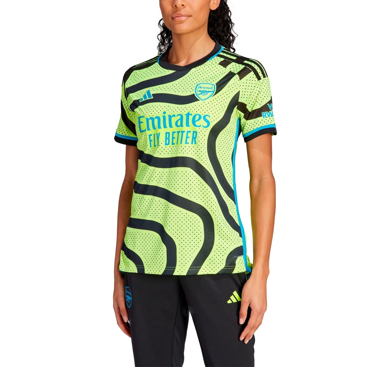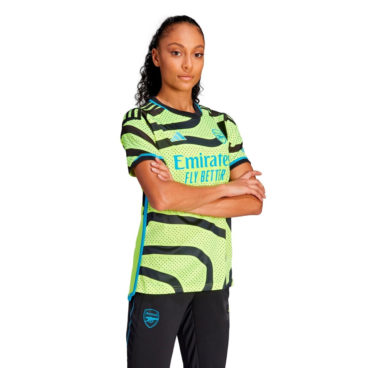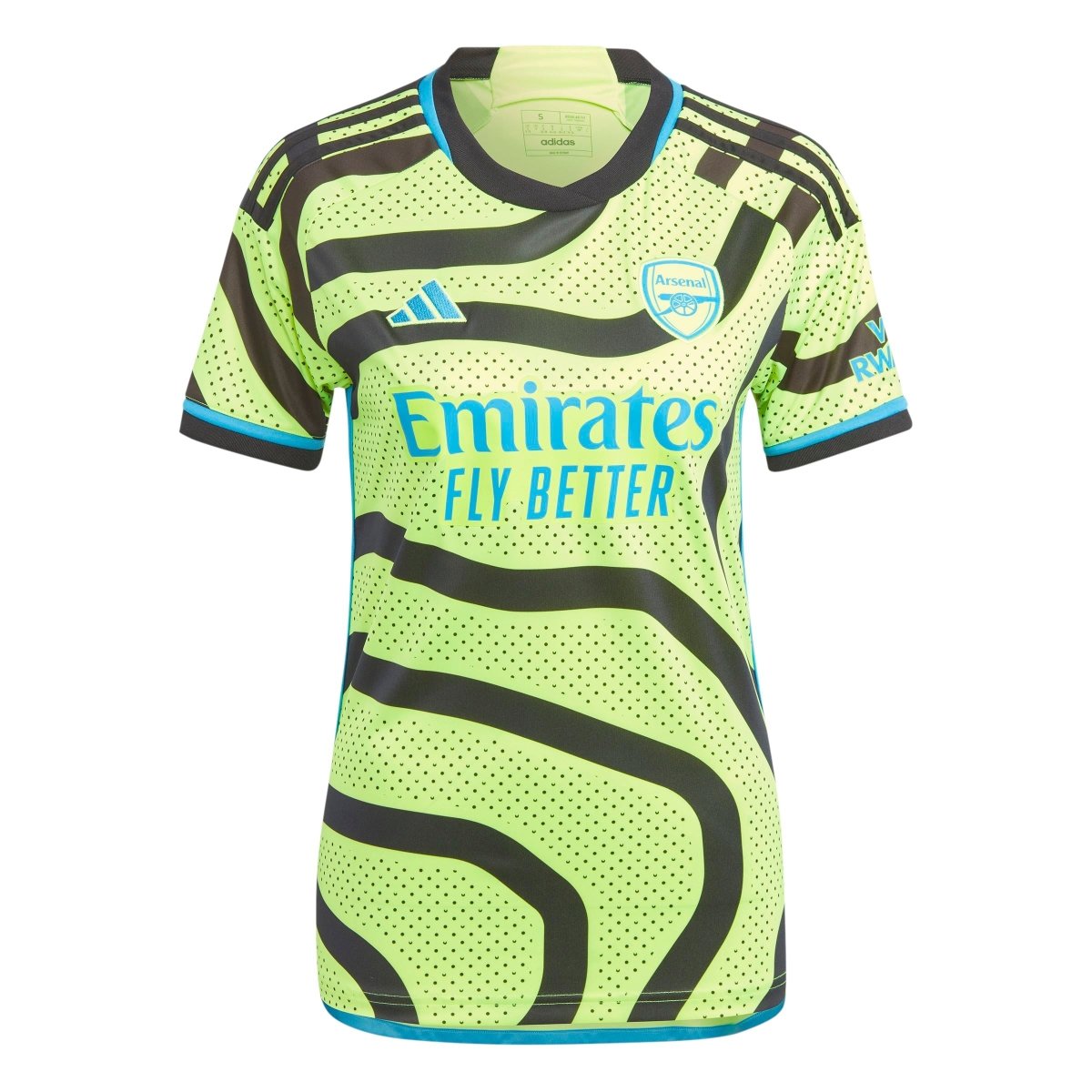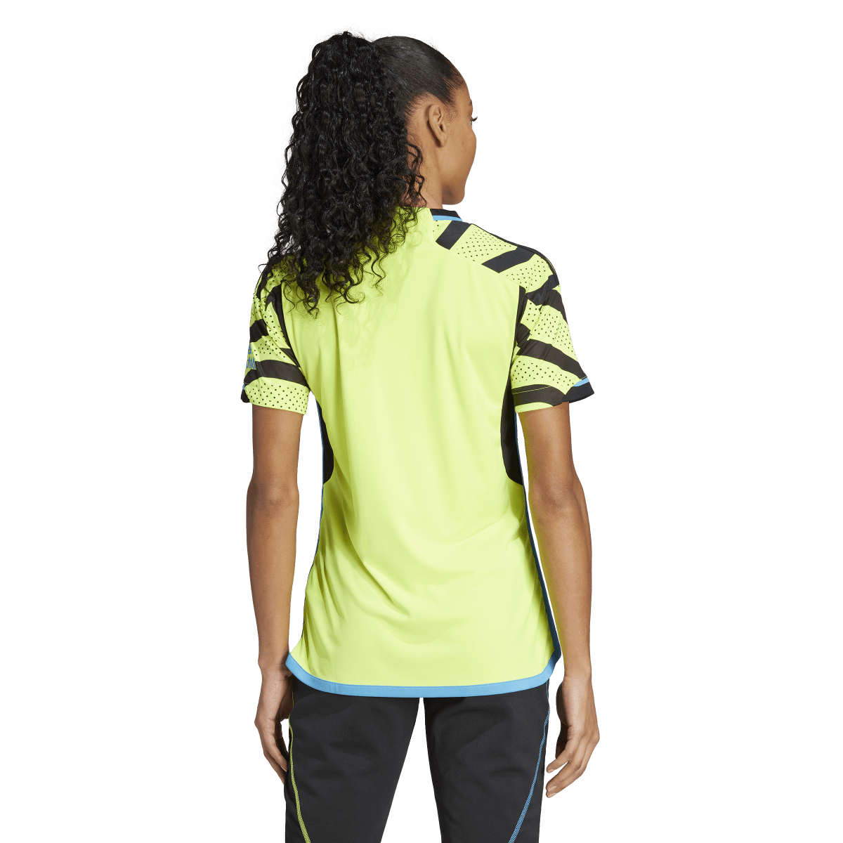 There's no place like home, but Gooners will travel far and wide to follow the Arsenal to glory and whether it's a pilgrimage to the Emirates Stadium or an away overseas, match days are as much about the journey as they are about the beautiful game. Inspired by the passion of traveling supporters, the Arsenal 23/24 Away Jersey is loosely inspired by a map of the teams' borough, with fluid lines reflecting the flow in and out of N7 when Arsenal fans are on the march. A fresh, shock-yellow color completes the update, alongside light blue accents. Created to keep fans comfortable, it combines soft fabric and sweat-wicking AEROREADY.