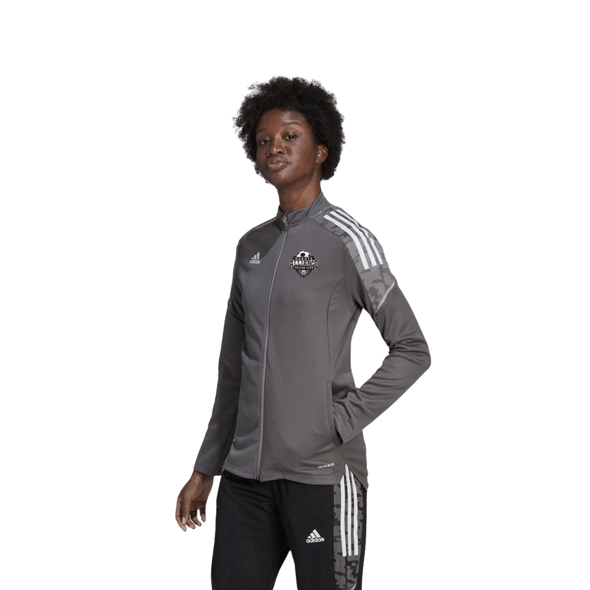 Progress doesn't happen overnight. That's why this adidas Condivo 21 jacket was created using Primeblue made with Parley Ocean Plastic, a recycled material created with upcycled plastic waste. Because it's a start. Its slim fit keeps your soccer flowing on the pitch. Moisture-absorbing AEROREADY removes any distractions.