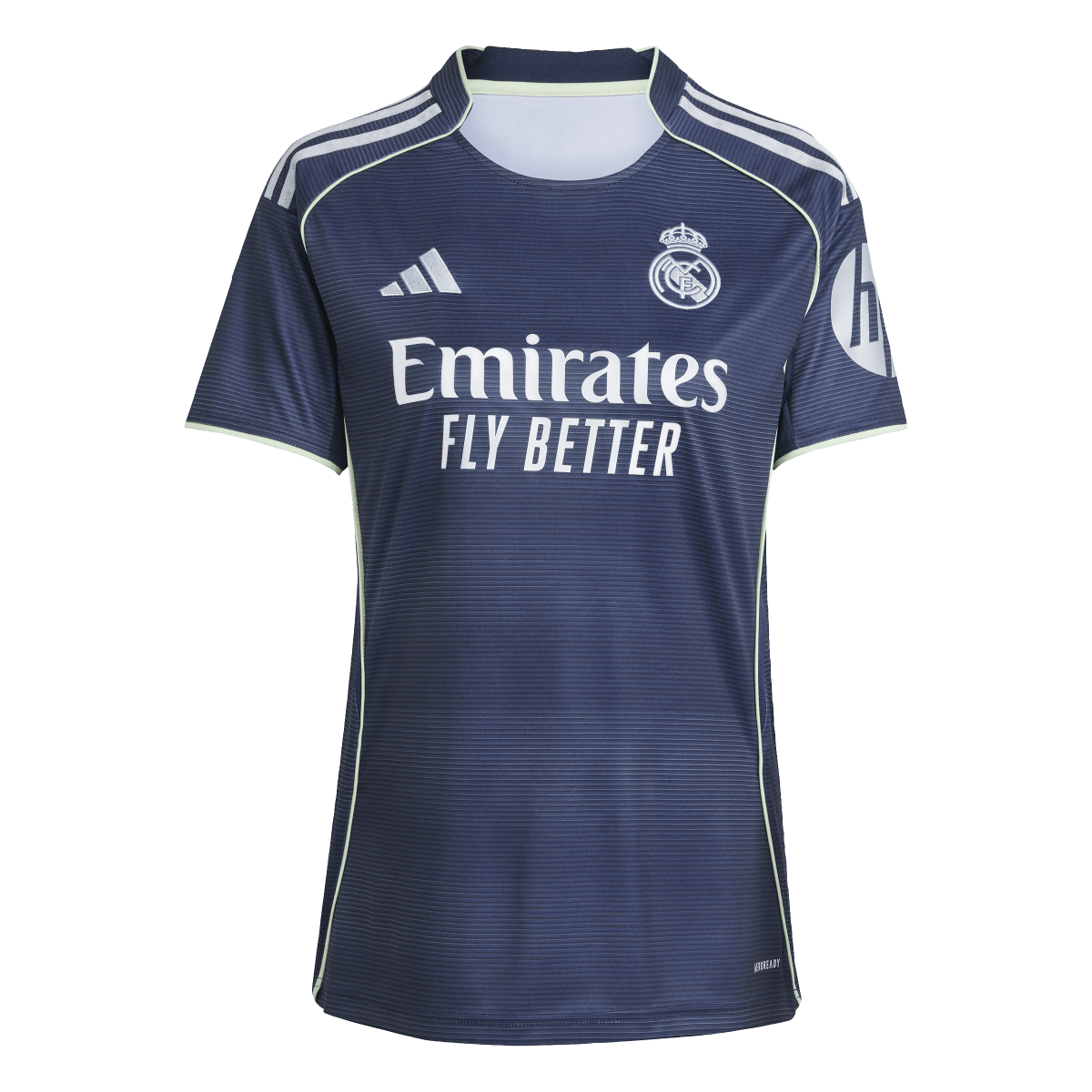 As Real Madrid's world-famous stadium enters a brand-new era, this adidas away football jersey pays tribute to magical nights at the Santiago Bernabéu. Its moiré effect print and silver metallic details combine to mimic the gleaming facade of the renovated arena. Moisture-managing AEROREADY ensures fans feel home comforts when they're on the road with their team.