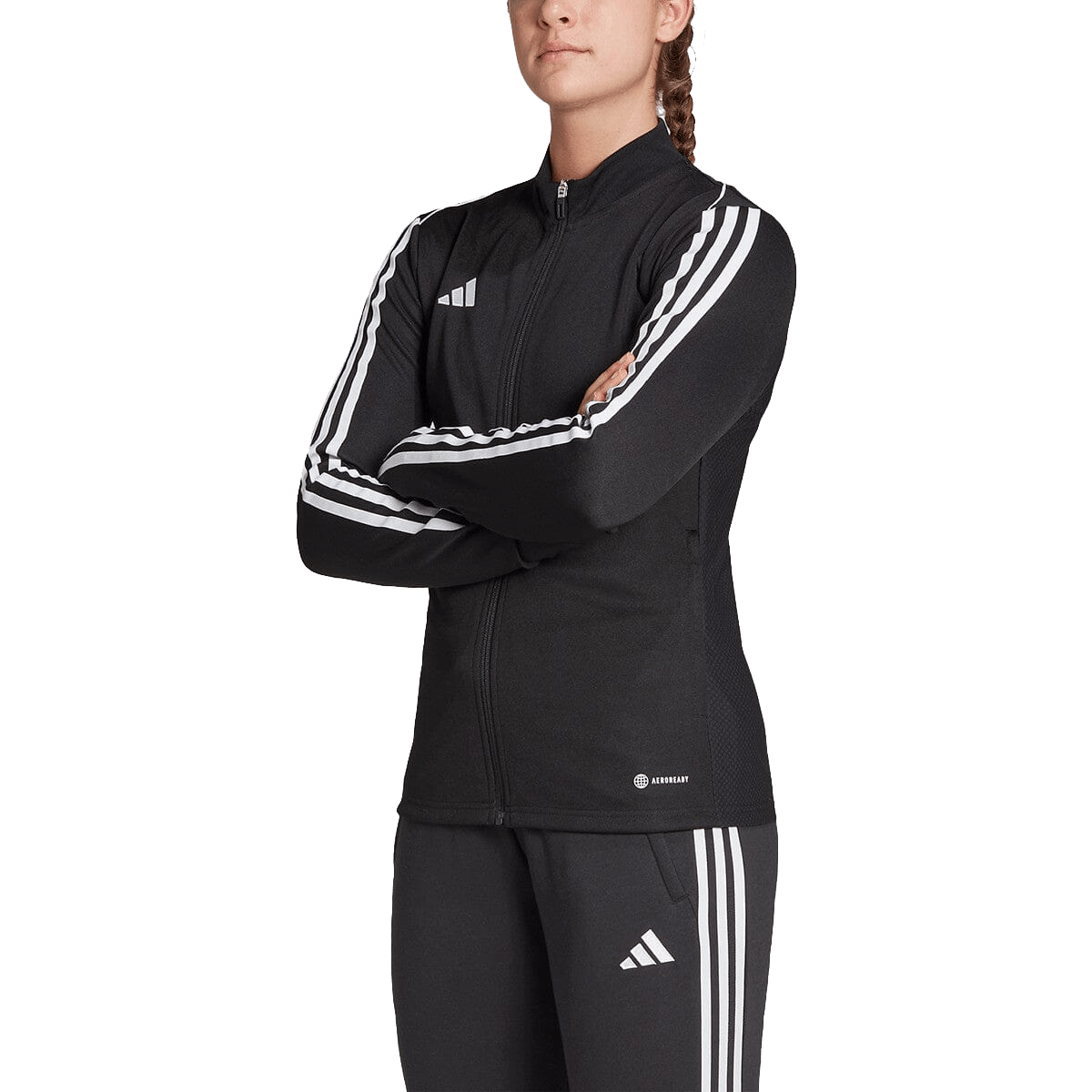 Born for the beautiful game. Its soft fabric and stand-up collar make this adidas soccer jacket the perfect extra layer on the training pitch. Part of the Tiro 23 League range, it'll keep you dry and comfortable even when it's zipped all the way up, thanks to moisture-absorbing AEROREADY. Its slim, streamlined fit means you can keep it on when you're in the thick of the action.