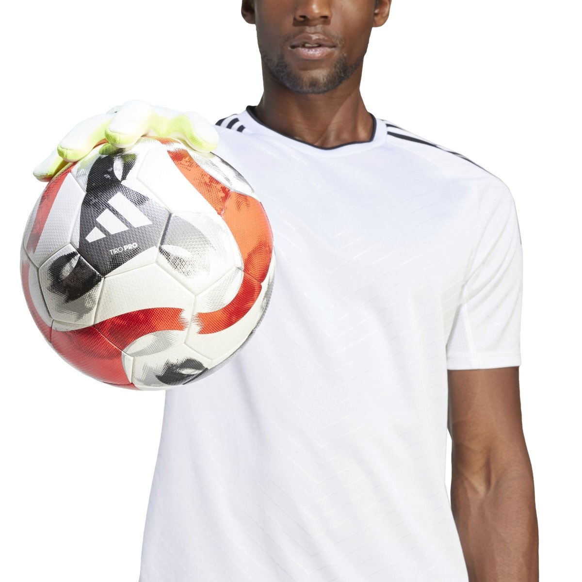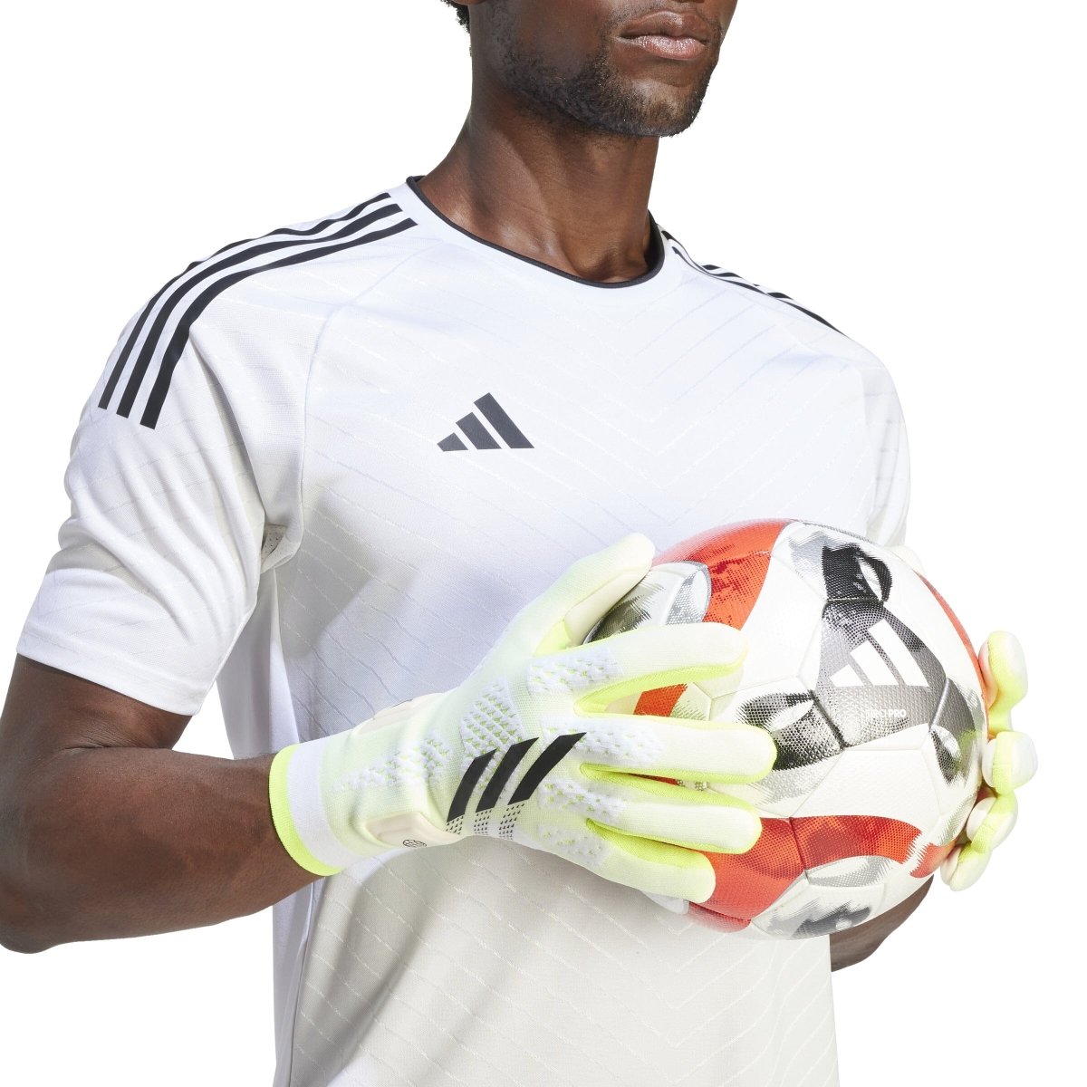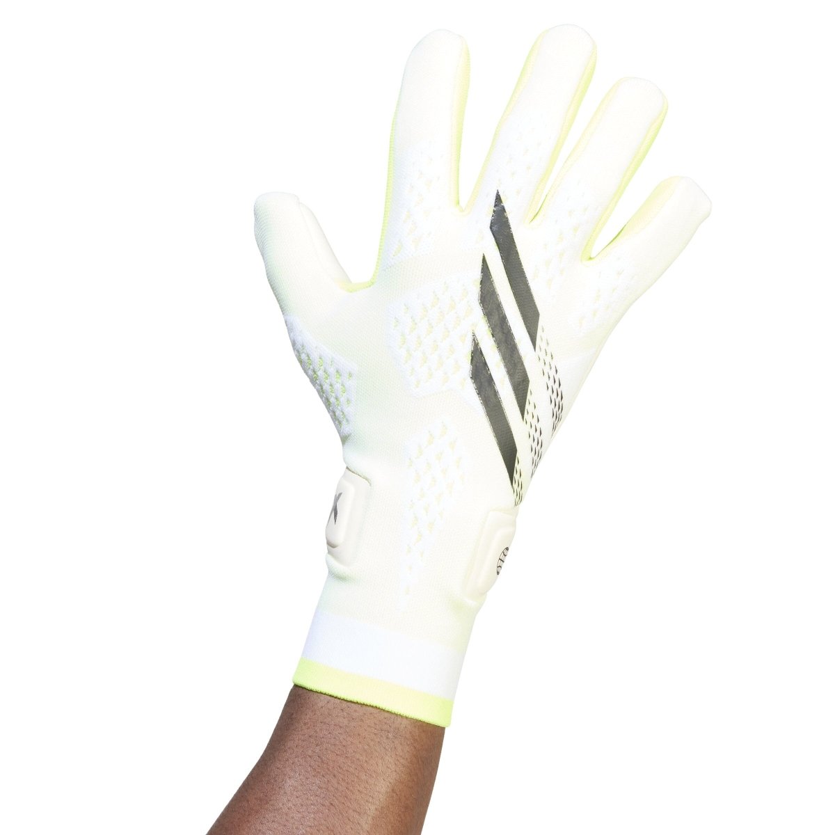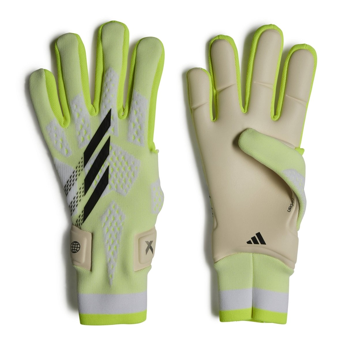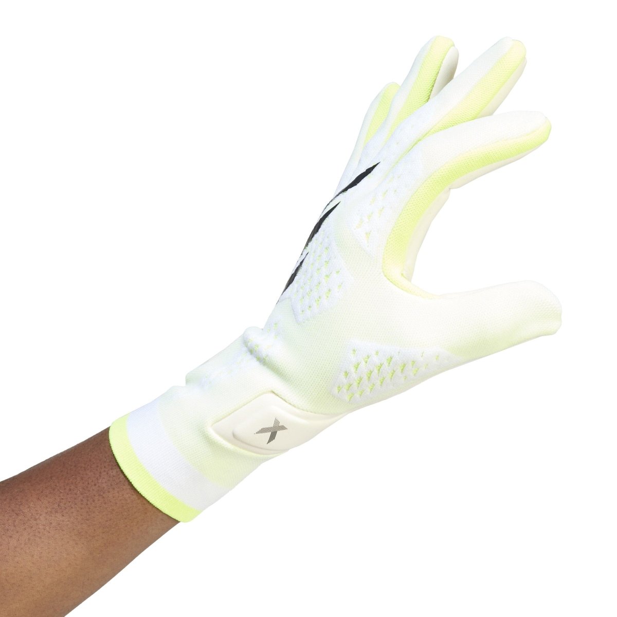 Be everywhere between the sticks. These adidas X Pro goalkeeper gloves give you the speed you need to fill your area thanks to their lightweight, streamlined design. Their strapless entry and mesh backhand combine for a natural, second-skin feel. On the palm's exterior, URG 2.0 foam delivers solid grip and shock absorption. On its interior, a silicone print prevents your hands from slipping. A minimum of 50% of this product is a blend of recycled and renewable materials.