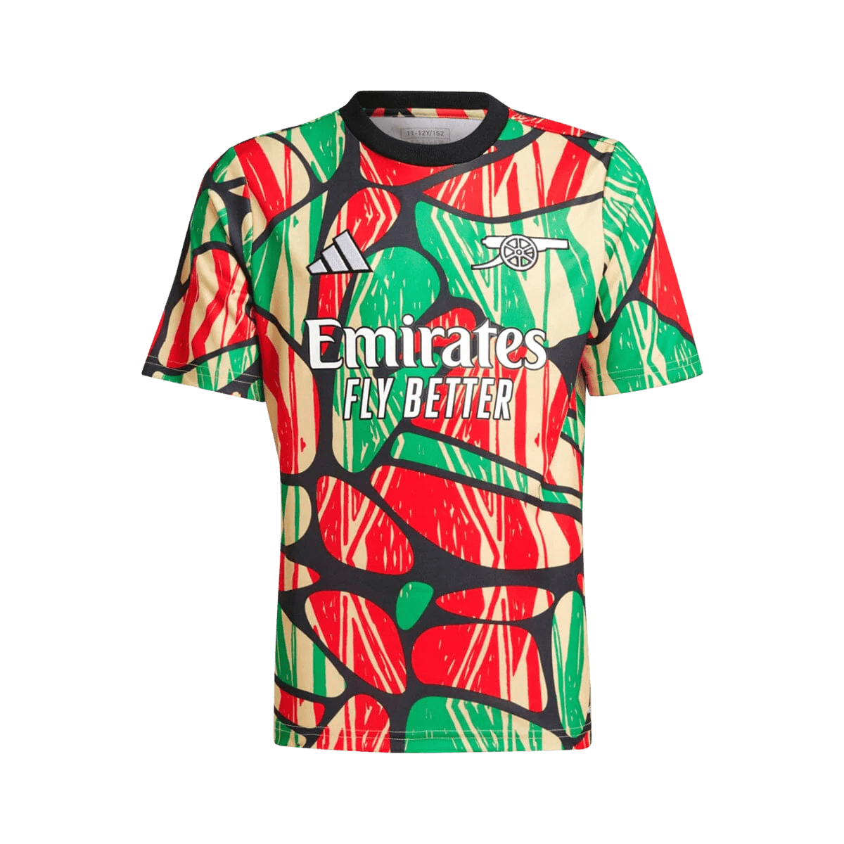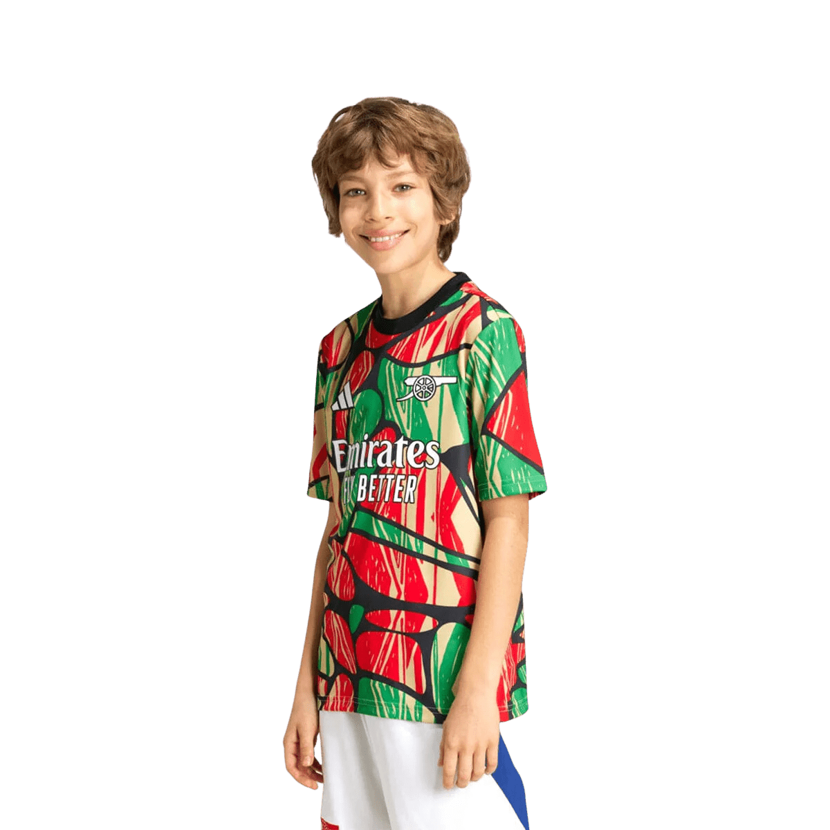 Part of a collaboration with Labrum London, this adidas Arsenal jersey is the one players pull on for their pre-game drills. Reflecting the fashion brand's West African influences, eye-catching graphics will ensure you stand out while you stretch and sprint. Behind the scenes, AEROREADY keeps you comfortably dry and ready for every soccer challenge.This product is made with 100% recycled materials. By reusing materials that have already been created, we help to reduce waste and our reliance on finite resources and reduce the footprint of the products we make.