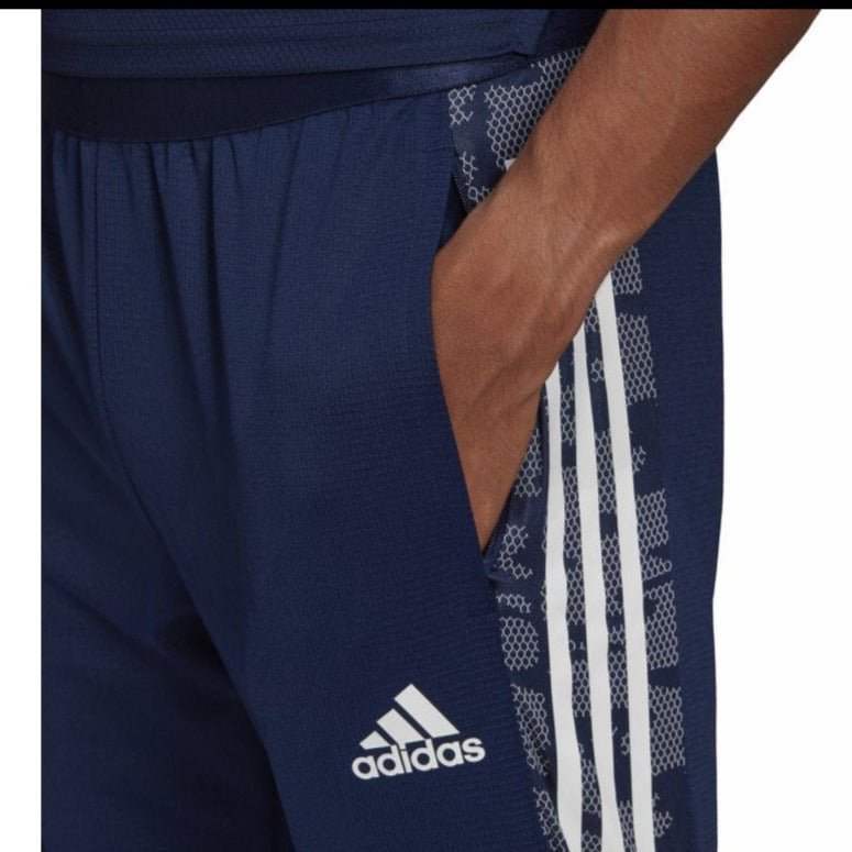 Training sessions alone don't win matches, but each one plays a part. Created using Primeblue made with Parley Ocean Plastic, these juniors' adidas Condivo 21 soccer pants score another small victory in the battle against plastic waste. AEROREADY keeps you dry. The tapered fit means nothing fouls your footwork.