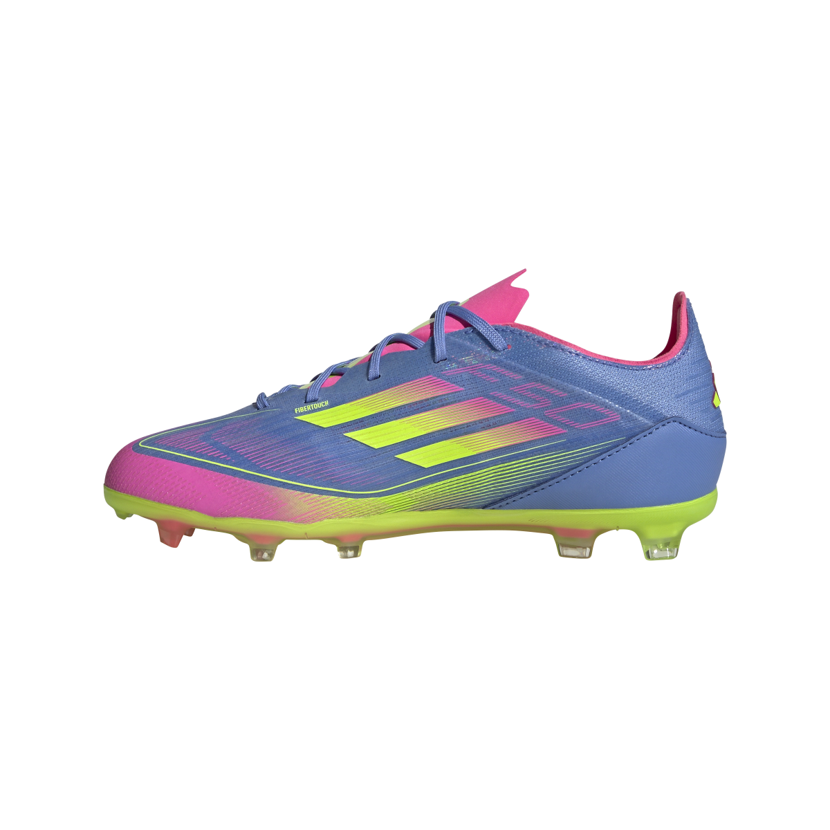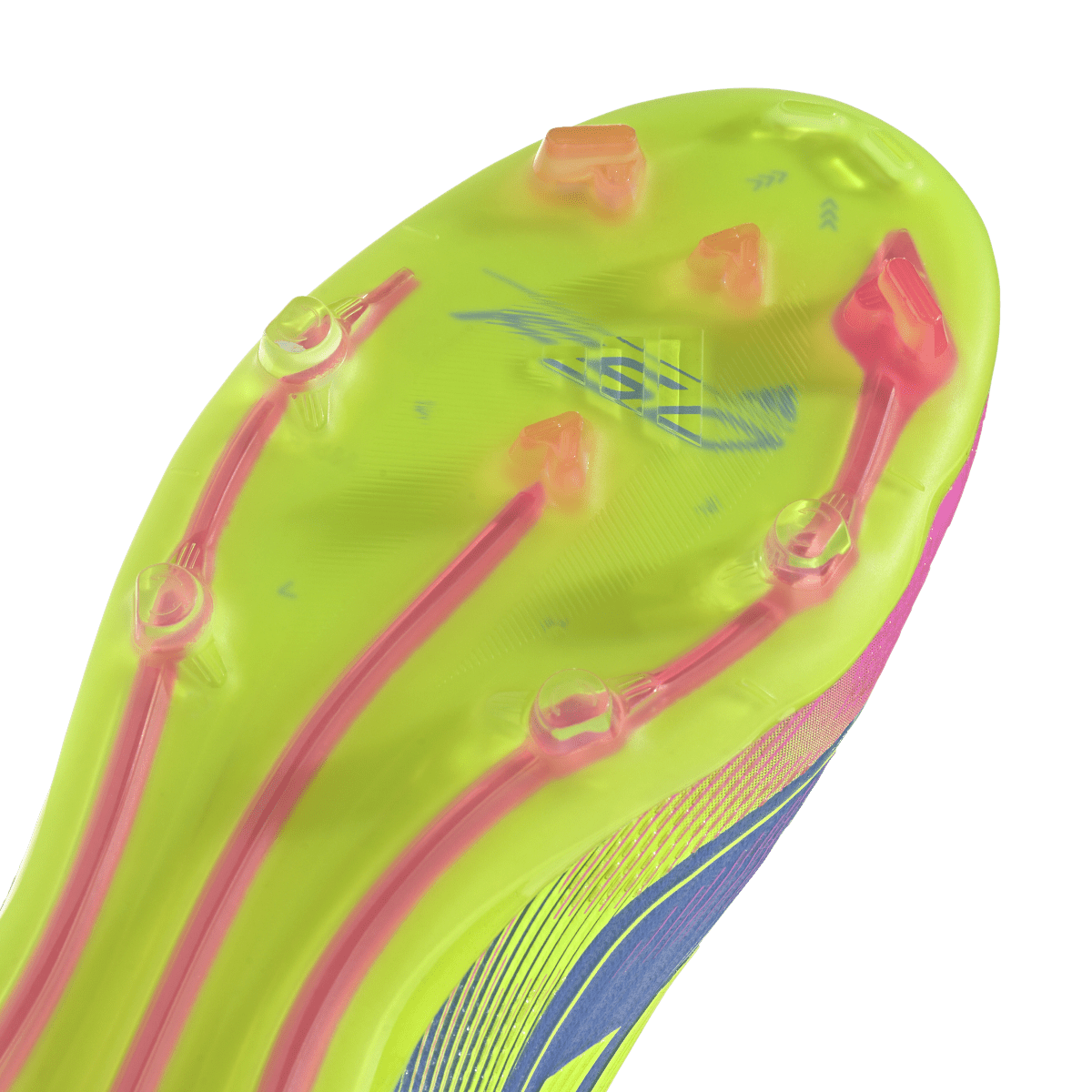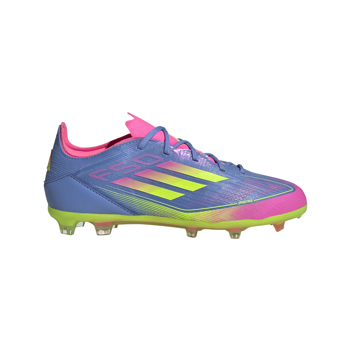 Push your pace to the limit in lightweight adidas F50 footwear engineered for speed. These juniors' Elite football boots have a thin Fibertouch upper with a Compression Fit Tunnel Tongue for lockdown and a Sprintweb 3D texture to help keep the ball close when you're flying. Designed for firm grass pitches, the Sprintplate 360 outsole delivers serious acceleration. This product features at least 20% recycled materials. By reusing materials that have already been created, we help to reduce waste and our reliance on finite resources and reduce the footprint of the products we make.