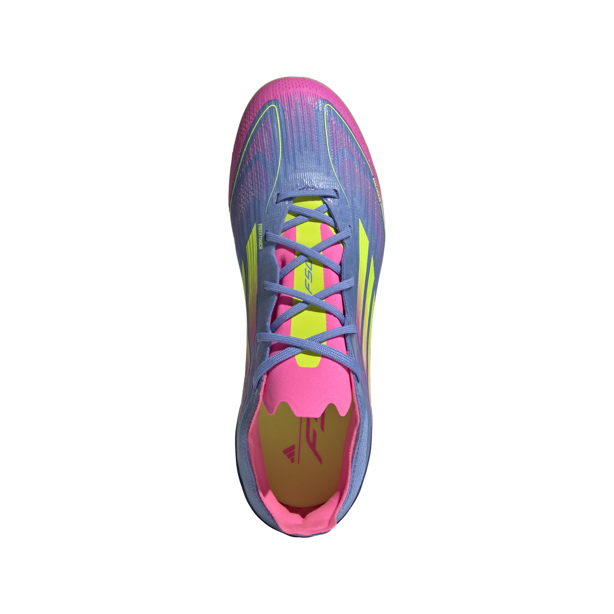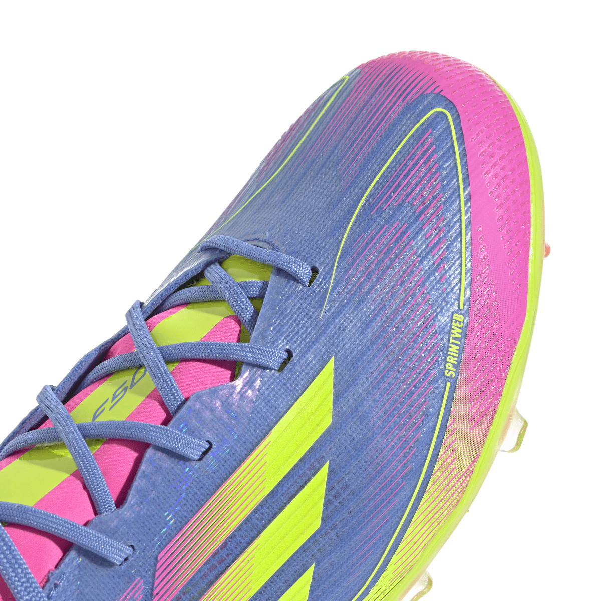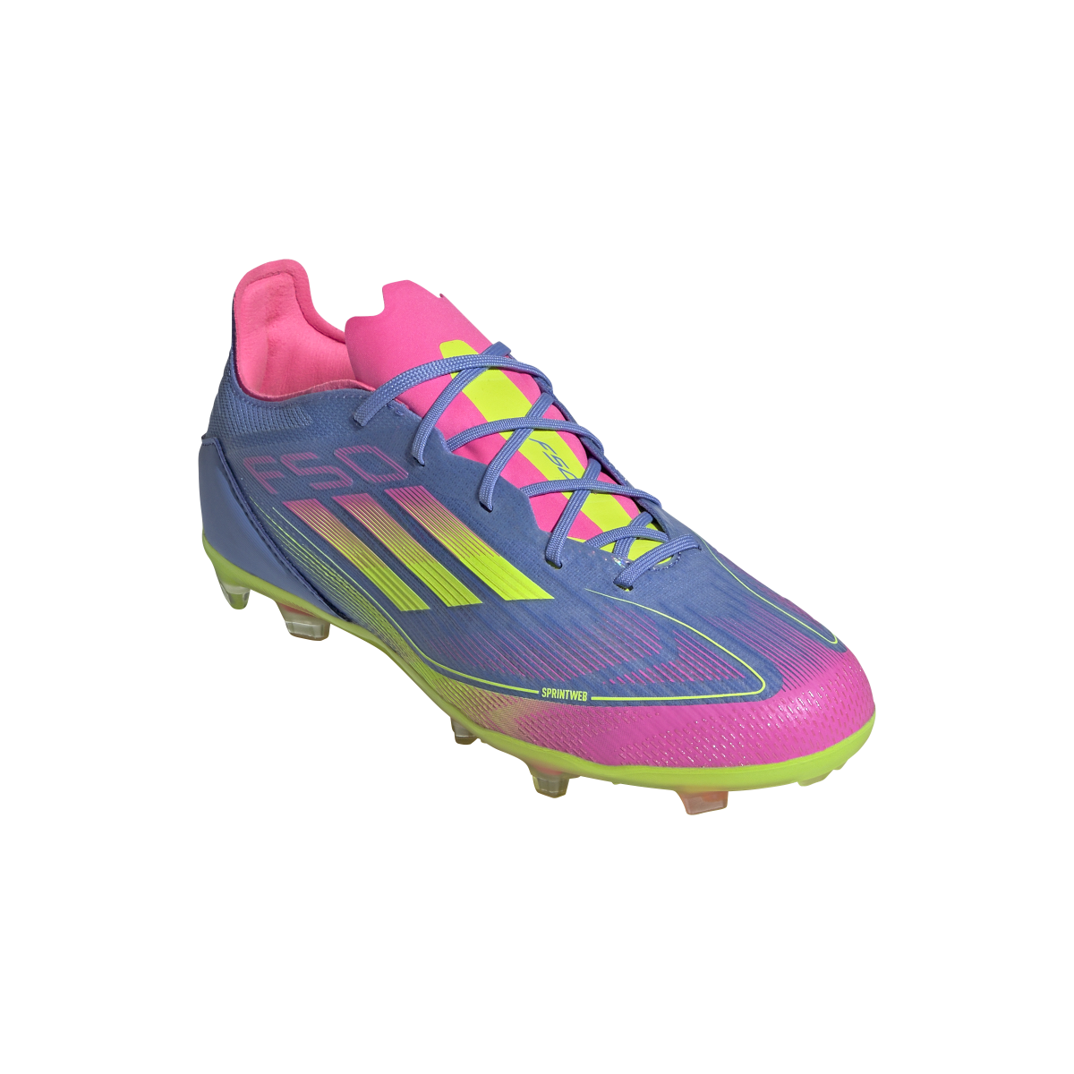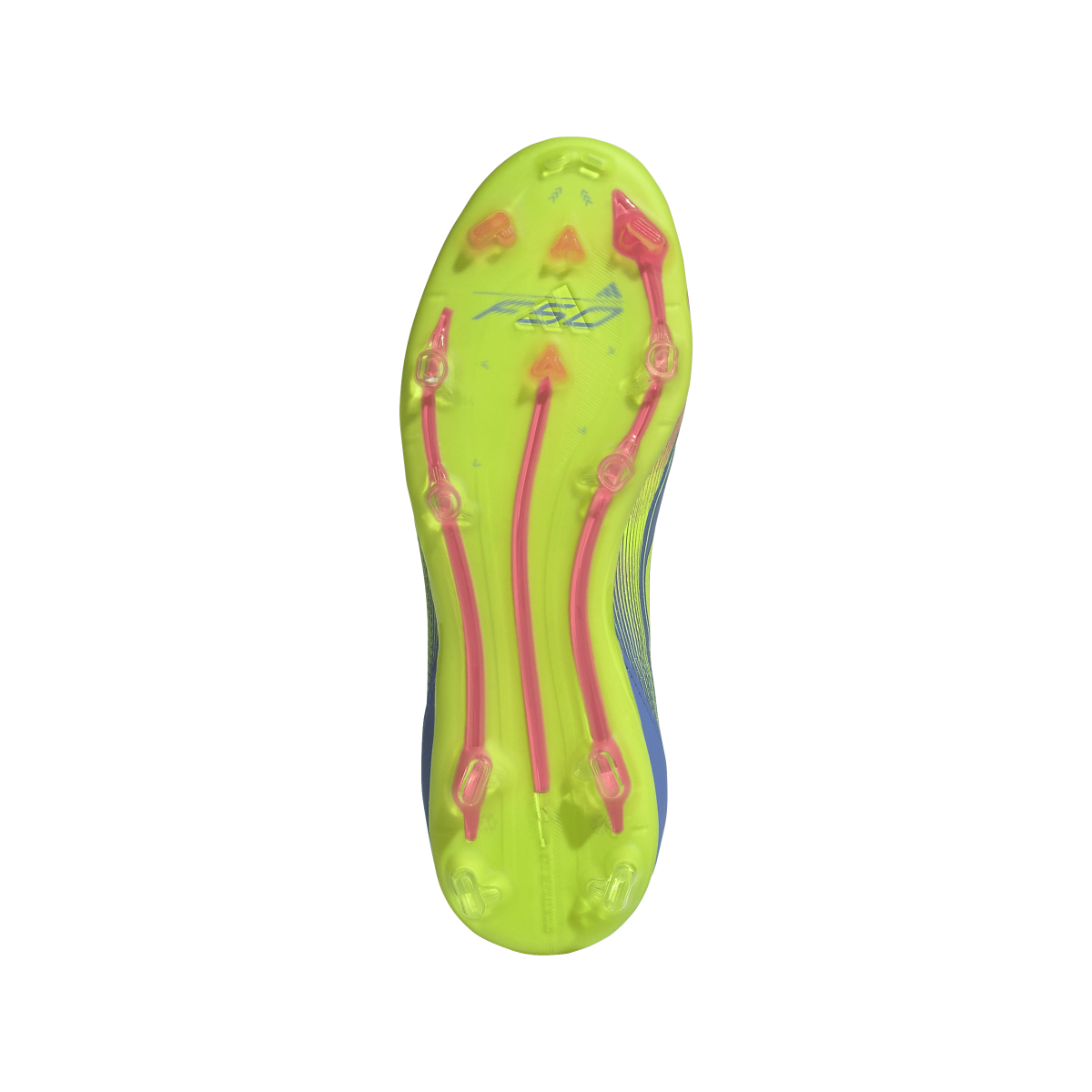 Push your pace to the limit in lightweight adidas F50 footwear engineered for speed. These juniors' Elite football boots have a thin Fibertouch upper with a Compression Fit Tunnel Tongue for lockdown and a Sprintweb 3D texture to help keep the ball close when you're flying. Designed for firm grass pitches, the Sprintplate 360 outsole delivers serious acceleration. This product features at least 20% recycled materials. By reusing materials that have already been created, we help to reduce waste and our reliance on finite resources and reduce the footprint of the products we make.