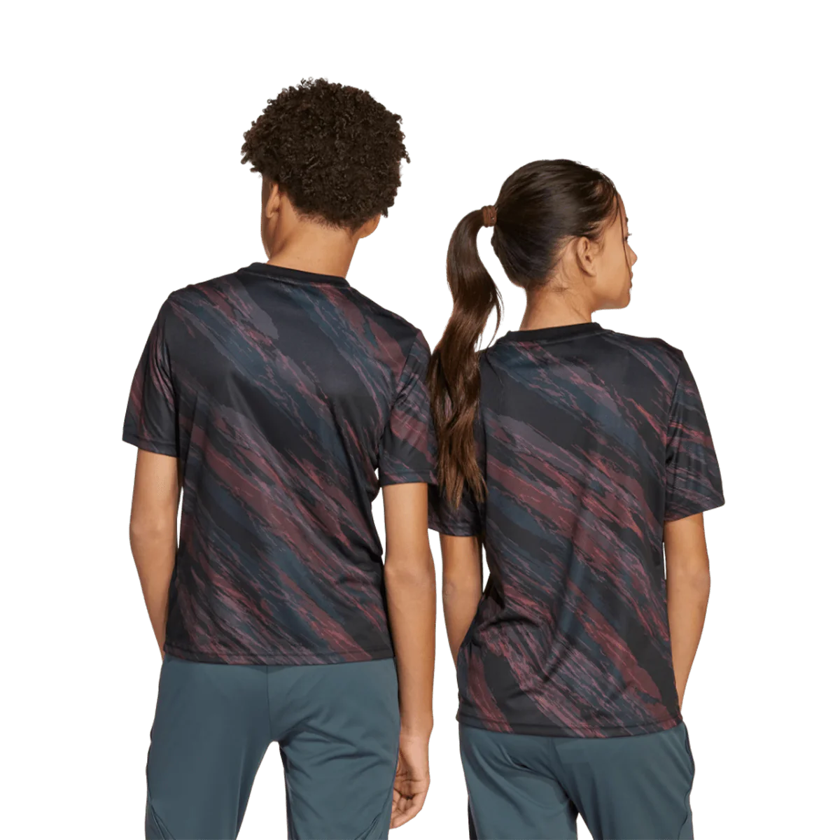 Celebrate 20 years of the iconic Allianz Arena in this juniors' FC Bayern pre-match jersey from adidas. Borrowing from the club's away kit look, bold graphics pay tribute to the stadium's vibrant colours during evening games. Behind the scenes, AEROREADY keeps you dry during the most intensive warm-ups. A club crest ensures you feel at home no matter how much effort you're putting in.