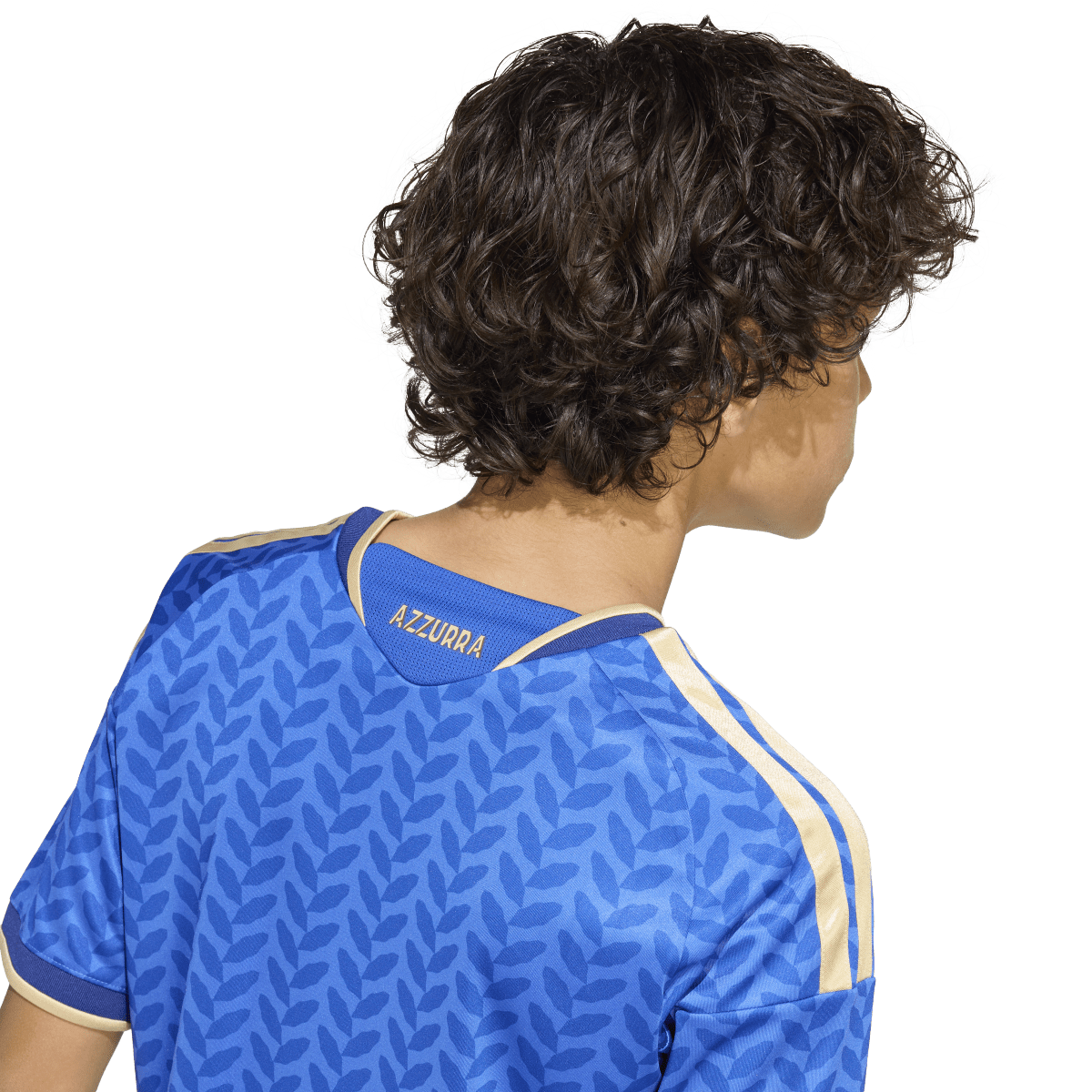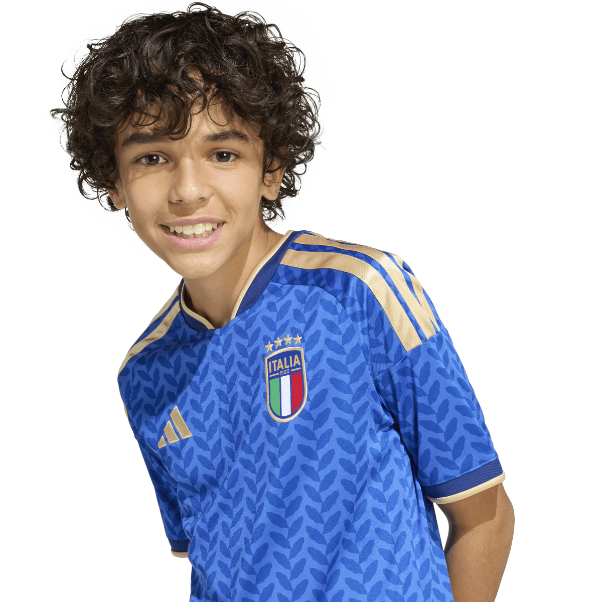 The Italy 26 Home Jersey is a celebration of Italian football heritage, designed to inspire the next generation of players. With its bold accents, this jersey pays homage to the rich history of the FIGC, making it a must-have for young football enthusiasts.