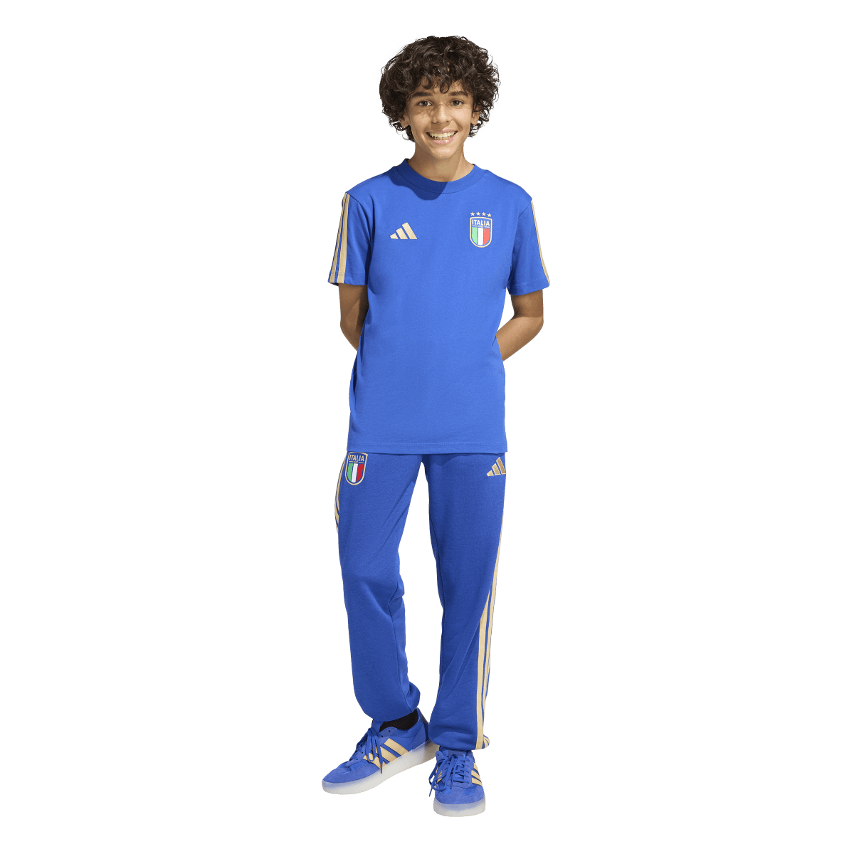 Let them wear their colors in style. The Italy DNA t-shirt delivers a clean, soccer-inspired look with the usual adidas focus on quality and detail. Made from soft single jersey cotton to keep things lightweight and breathable through busy days or downtime. A regular fit and crew neckline give it a no-fuss shape that's easy to move in—and easy to pair