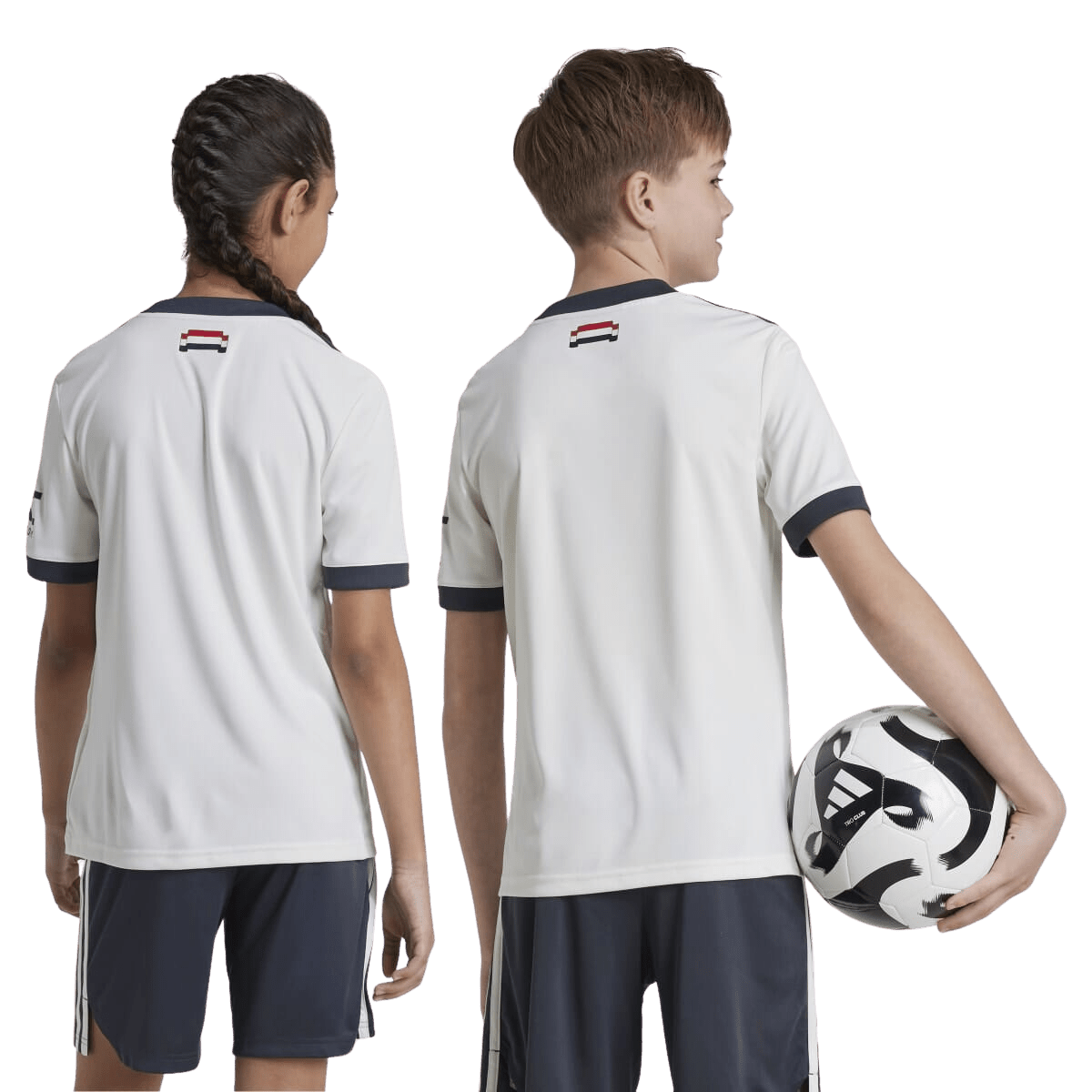 Football pride never falls out of fashion. This juniors' Manchester United third jersey salutes the flags that follow the club home and away, while also adding some classic adidas heritage. Shorthand for sporty style, a Trefoil and red devil badge stand out from that tricolour chest bar. Moisture-managing AEROREADY keeps fans comfortable.