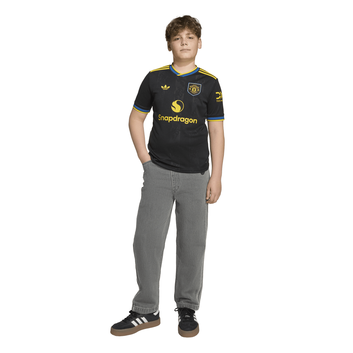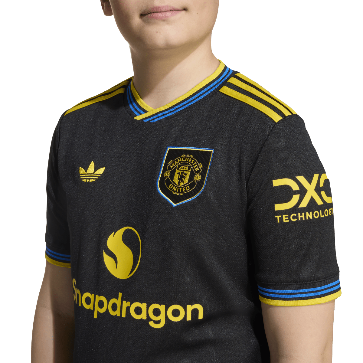 Featuring the bold third kit design, official club crest, adidas 3-Stripes, and sponsor details, it delivers an authentic match-day look for every Manchester United supporter.