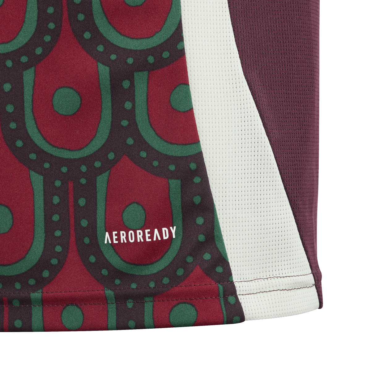 Created for expressive football fandom. Repeated across the front and back, the eye-catching eagle design on this juniors' adidas Mexico home jersey takes its inspiration from traditional folk art. Behind the rich symbolism, moisture-managing AEROREADY makes this shirt perfect for backing your team. That woven badge on the chest puts your support on permanent display.This product is made with 100% recycled materials. By reusing materials that have already been created, we help to reduce waste and our reliance on finite resources and reduce the footprint of the products we make.