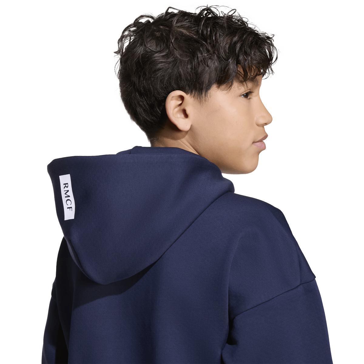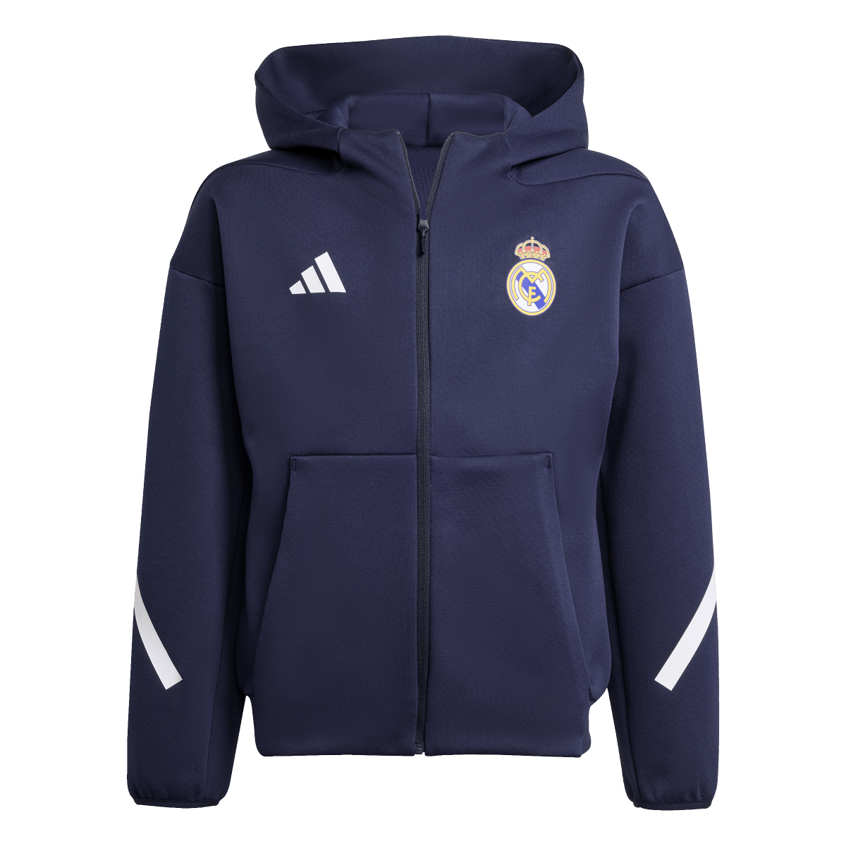 Created to keep you focused, this Real Madrid jacket is from the ADIDAS Z.N.E. family. The football hoodie the players wear as they walk onto the field, it's built from soft doubleknit fabric to help tune out distractions. On top of the spacious hood, a club graphic completes a look that will make all Madridistas proud.