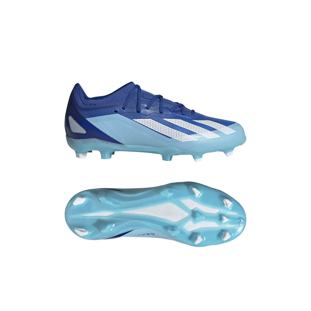The game's gone? Nah. It's just waiting for you to change it. Again. And again. Like to keep your rivals guessing? Go wild in adidas X Crazyfast. Looking slick with a semi-translucent Aeropacity Speedskin upper, these juniors' soccer cleats include reinforcements only where they're needed. The adidas PRIMEKNIT collar straps you in as a multidirectional TPU outsole helps you hit top speed on firm ground. Made with a series of recycled materials, this upper features at least 50% recycled content. This product represents just one of our solutions to help end plastic waste.