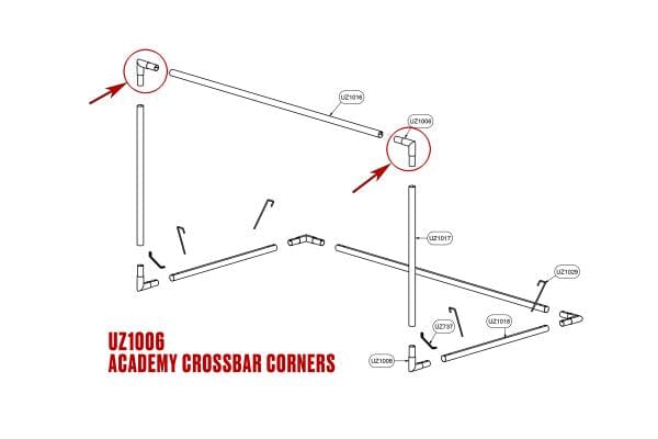 The UZ1006 can be used to connect any post of any Academy Goal to the crossbar or back, bottom base bar.