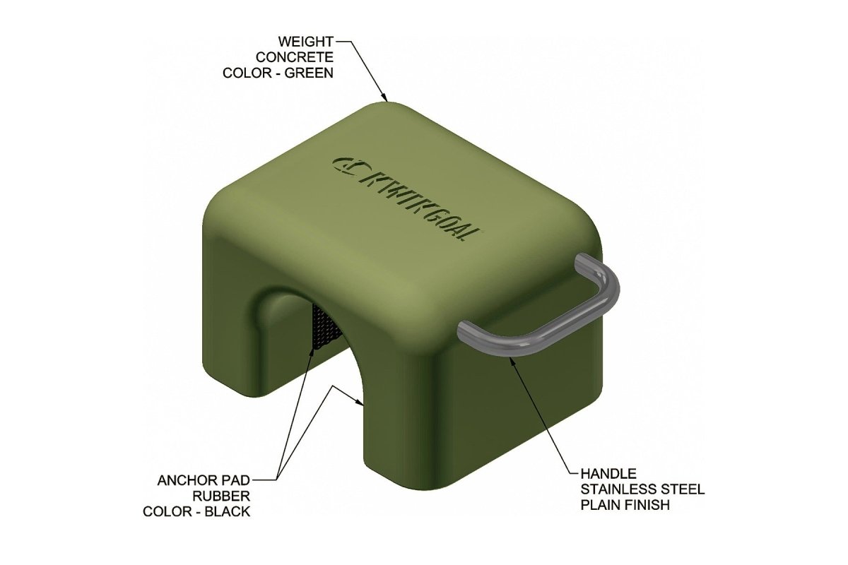 These concrete and steel anchor weights are designed to provide security and stability to Pro Premier, Evolution, Fusion, Deluxe European Club, and Academy Goals. Each anchor weighs 60 lbs. for a total of 240 lbs. of reinforcement. The anchors are all-surface friendly making them suitable for use on turf or grass. The 10B4608 anchors are sold in sets of 4 and include stainless steel handles and 8 rubber pads to protect your goal’s finish.