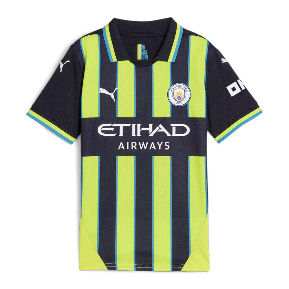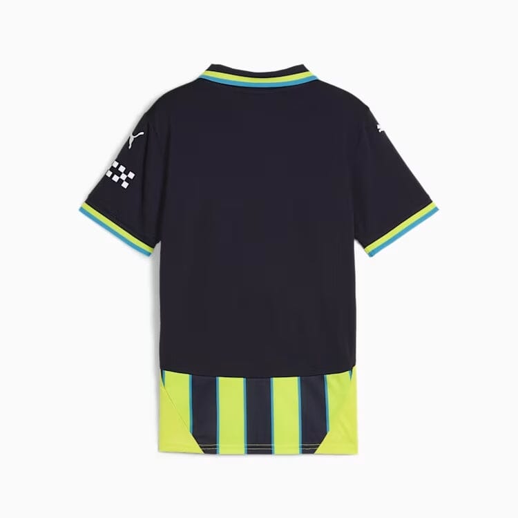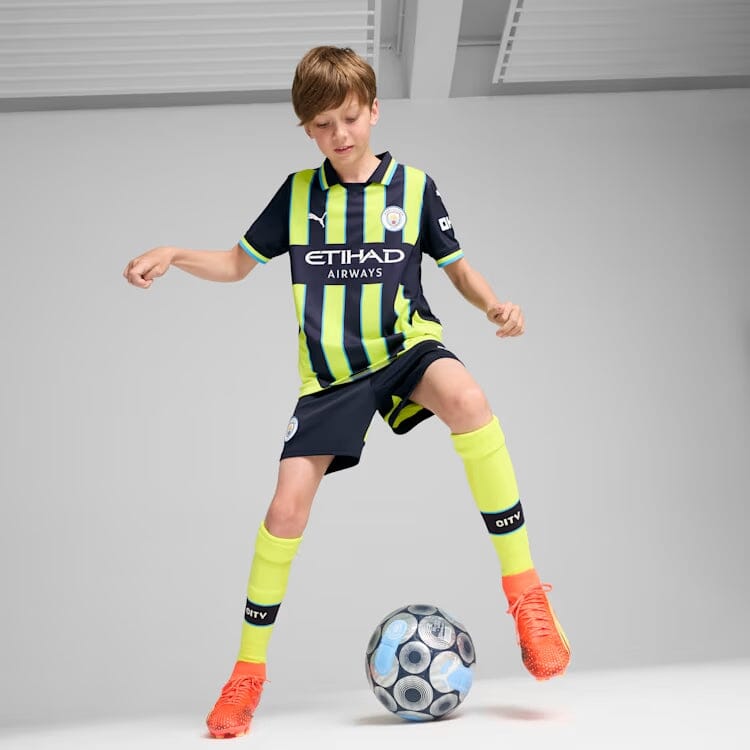 If Manchester City’s history has taught us anything, it’s that the comeback is always on. Take May 30th, 1999, when they overcame a two-goal deficit to win the Second Division play-off final versus Gillingham on penalties. Often seen as the turning point in City’s fortunes, this match has a special place in fan culture and so does the neon yellow and navy striped kit the team wore on the day. For the 25th anniversary, we’re bringing it back as a testament to the tenacity of the club and the fans that never, ever, ever give in. How’s that for a comeback?