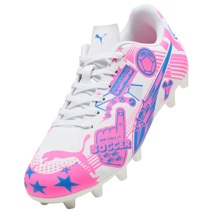 Unleash your speed with the signature style of a soccer icon. The ULTRA PLAY, reimagined in a bold Christian Pulisic special edition, combines lightweight comfort with striking design. A soft synthetic upper with embossed and printed details delivers standout looks and lasting performance, while the TPU outsole ensures optimal grip and agility, so young players can move freely and play fearlessly, just like CP himself.