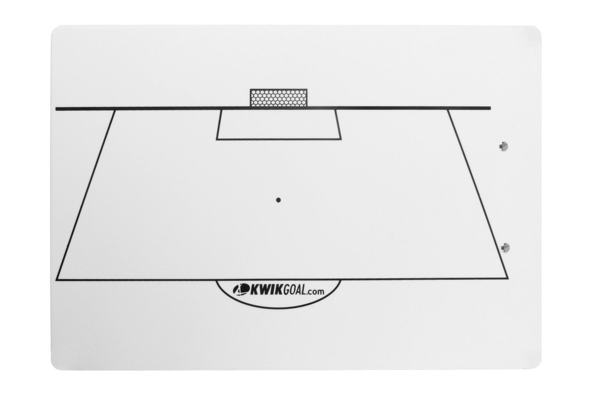 The 18B601 Kwik Goal Soccer Tactic Board provides space on both sides of the board. The main side features a full field and the back has an attacking/defending third.