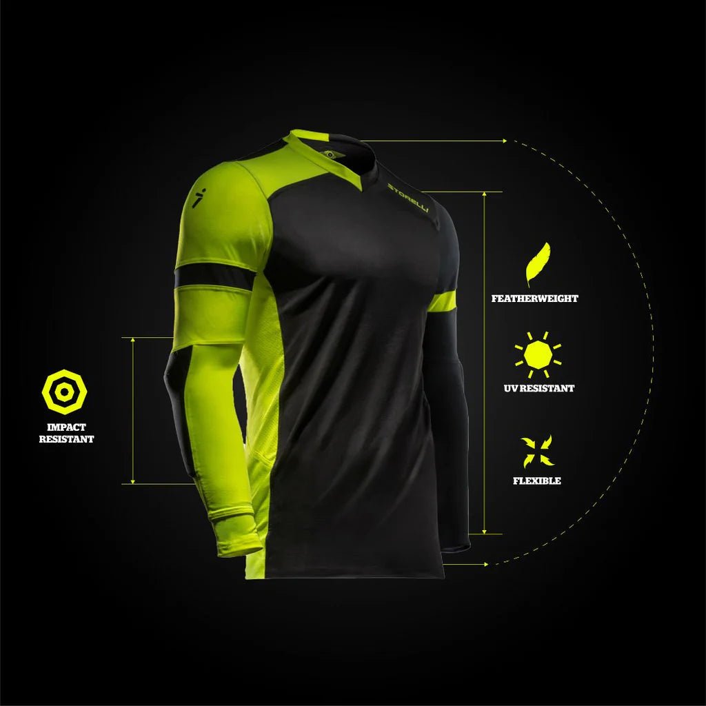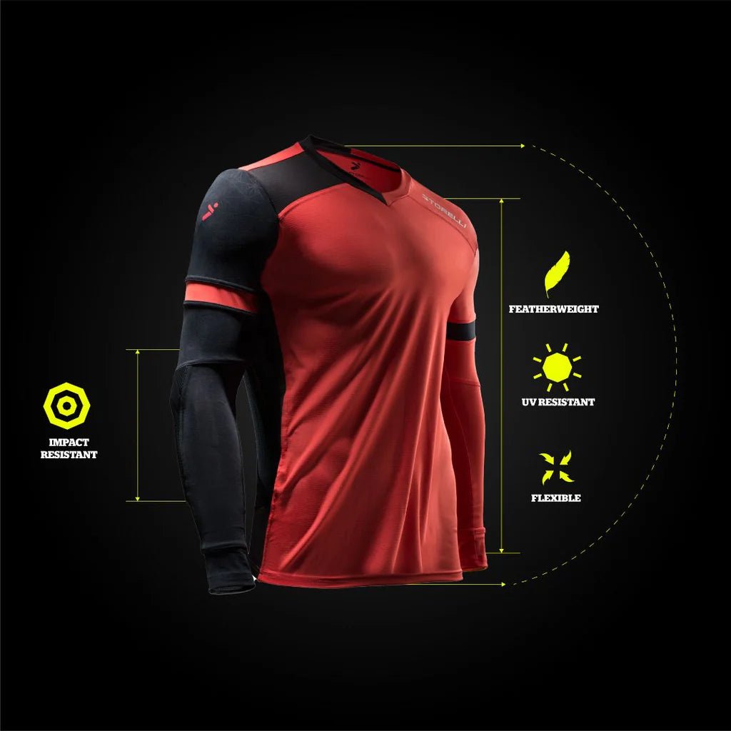 Breathable goalkeeper jersey armored with ergonomic XRD® Extreme Impact Protection on the elbows and slim fit construction to hold up comfortably in any condition.